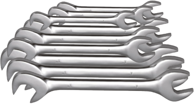 T&E Tools Large Metric Angle Wrench Set. The metric open end angle wrenches is 15° - 60° offset.